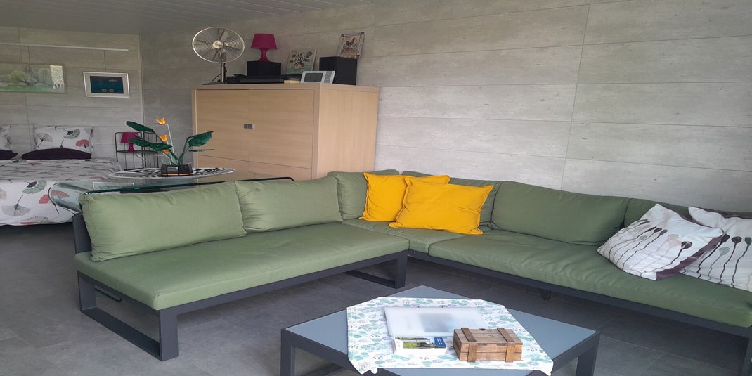 De gasten beschikken over een eigen ingang, links naast onze woning.